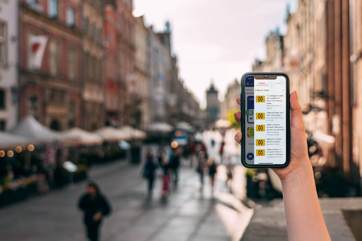 - podpowiada, gdzie znajduje się najbliższa toaleta oraz wyznacza trasę do niej;